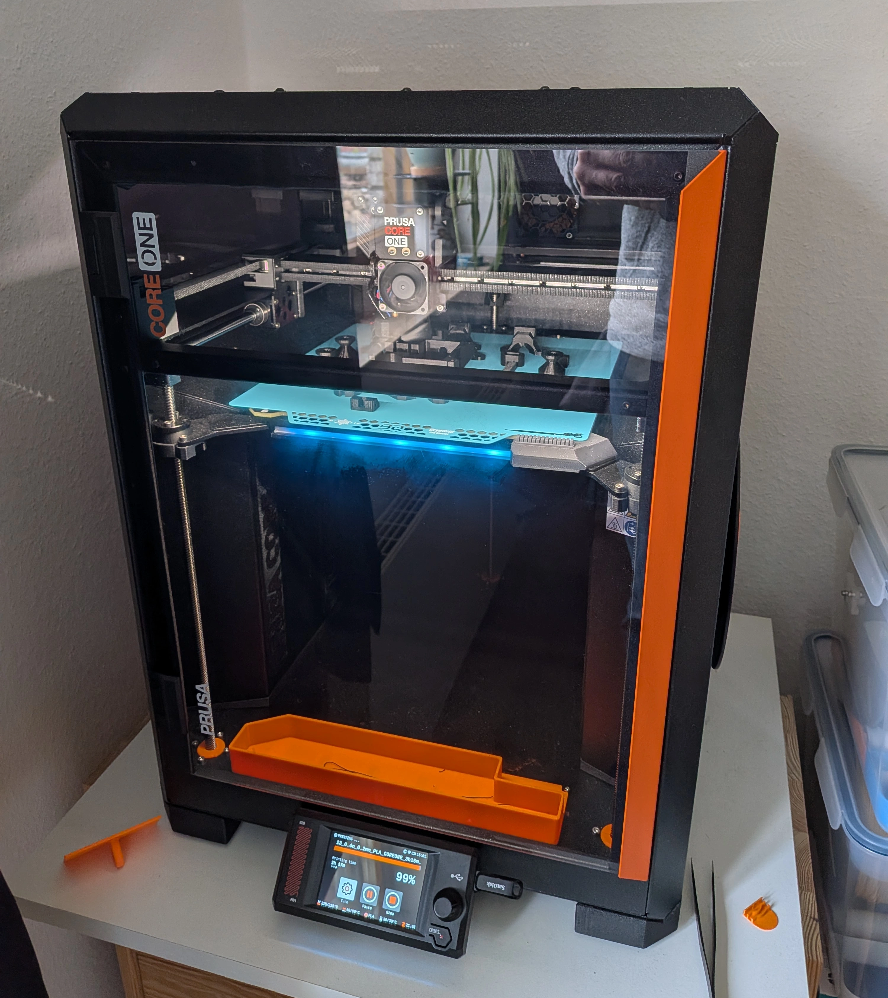 Bei meinem Prusa MK3S+ hat es micht sehr häufig gestört, dass dieser in Punkt Geschwindigkeit modernen Druckern sehr hinterhergängt. Aktuelle Modelle haben die doppelte bis dreifache Geschwindigkeit. Gerade bei großen Drucken fällt das schon ins Gewicht. Außerdem wollte ich wenn schon gleich einen CoreXY mit geschlossenem Bauraum.